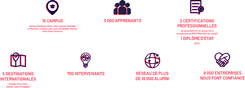 Les indicateurs communiqués sont nationaux, le détail par campus est disponible sur demande.